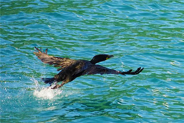 Double-crested Cormorant(角鸬鹚)发情期头上会有两个冠竖起。