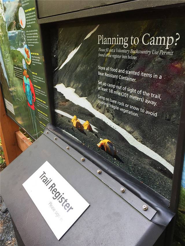 最后是防熊。建议几个人一起爬,带上防熊喷雾。俗话说不怕一万就怕万一,这里trail出现黑熊攻击的可能性微乎其微,但是也要做好准备。阿拉斯加防熊手册上是这样介绍的:如果你遇到了熊(中等距离)不要跑,让熊知道你是人,慢慢的走不要回头,注意不要靠近熊幼崽。 如果你近处遇到熊;大声说话慢慢移走自己,不要跑不要回头。如果一只熊向你冲来,如果是黑熊,还击! 如果是棕熊,趴下手抱头,如果它攻击你,你要有力的还击!