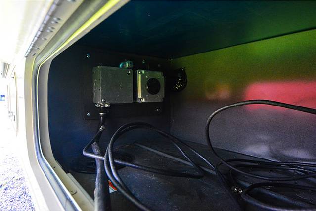 充电,将插头从车内部拔出,插到房车营地接线口上,向上推保险,完成。