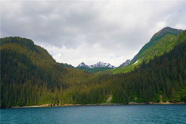 Seward极具特色的峡湾地貌是更新世时期冰川雕凿出来的。开船后站在船尾可以一览无余。