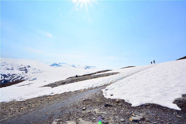 接着说携带的物品:一对登山杖是一定要带的,就好比你多了两只脚在走路。轻质背包,一人三到四瓶水,我只带了两瓶水,结果上到山上渴死了,只能靠着喝山泉和吃雪暂时解决一下。食物适量,我们这次就带了太多三明治,结果还要背回来。高指数防晒霜加墨镜,山顶的雪反光可以刺瞎双眼,而且紫外线爆棚。