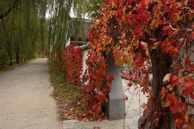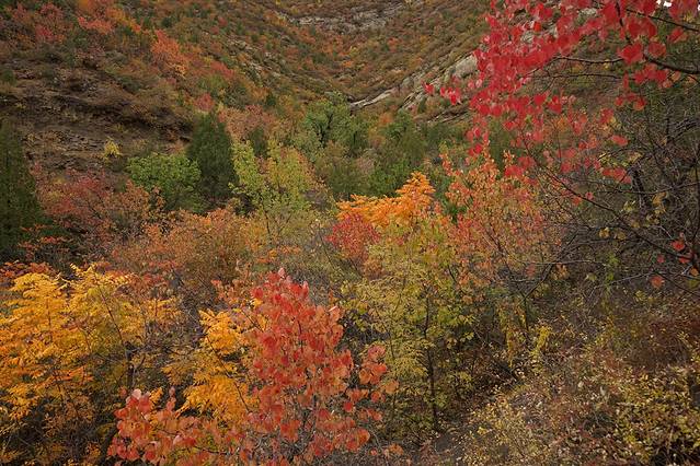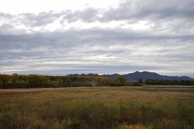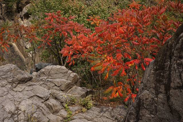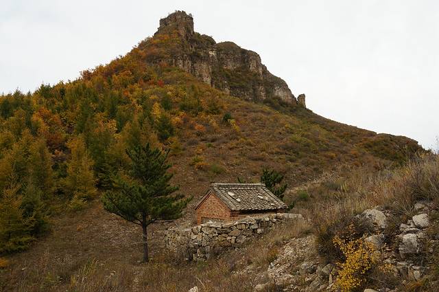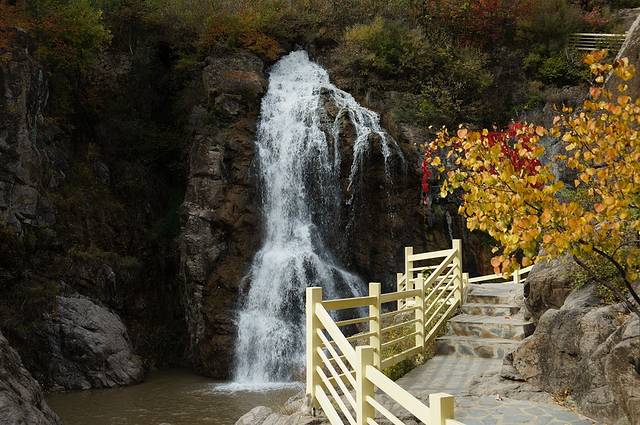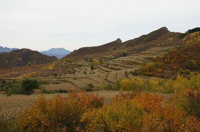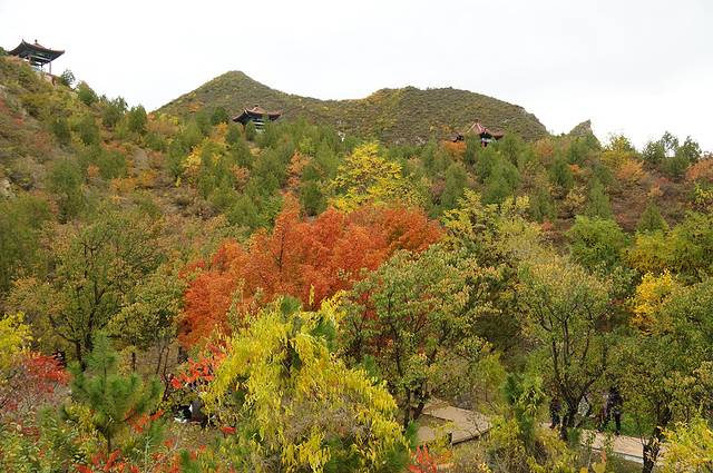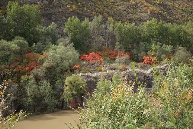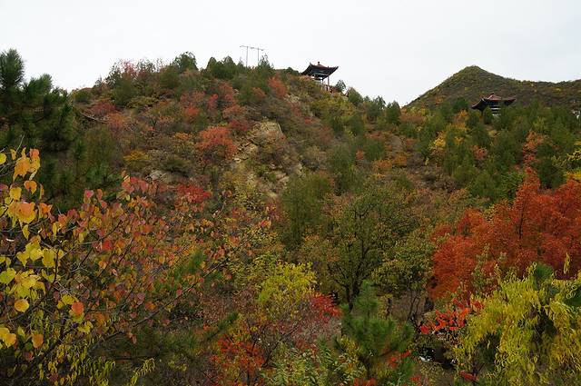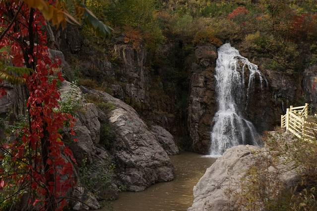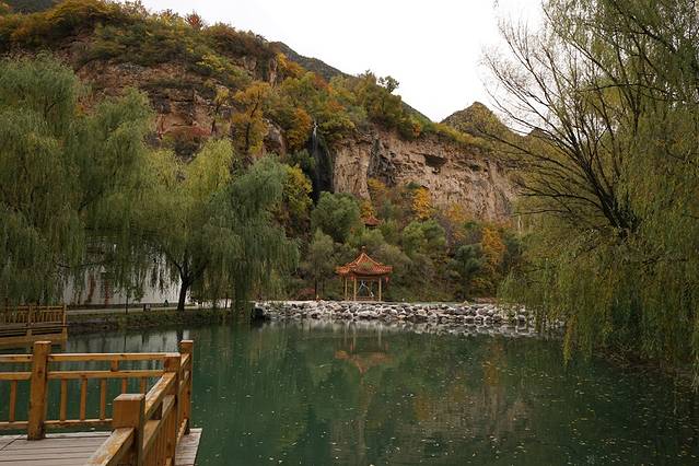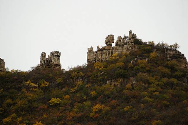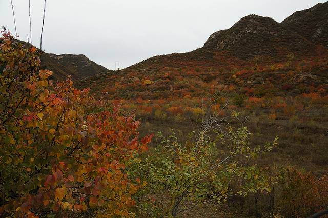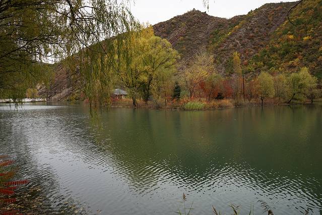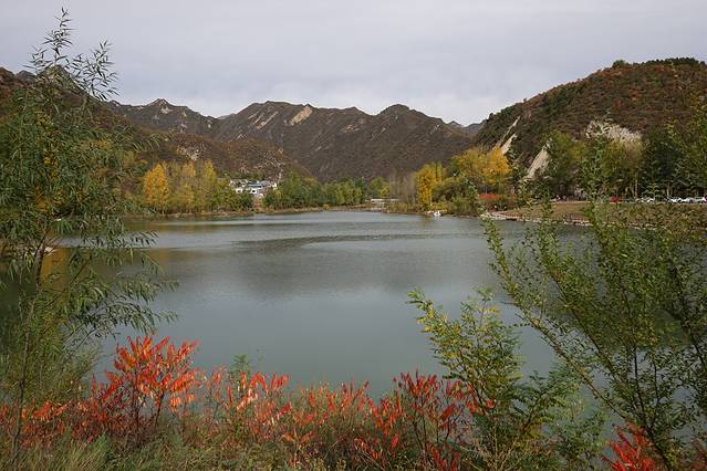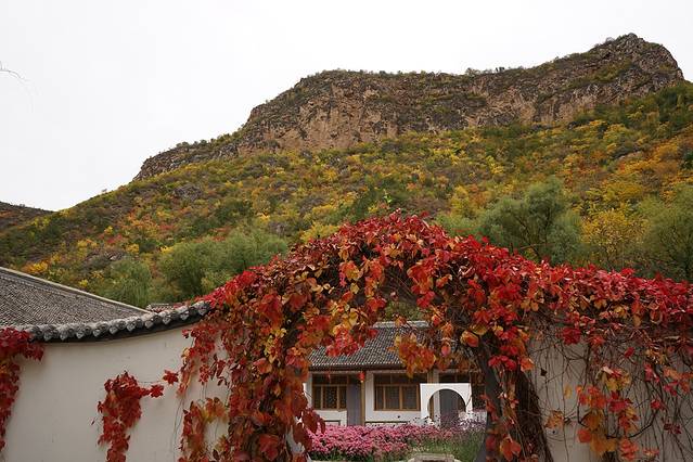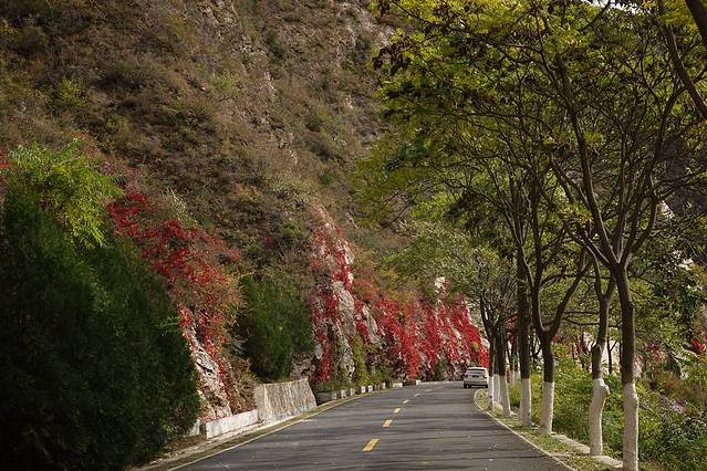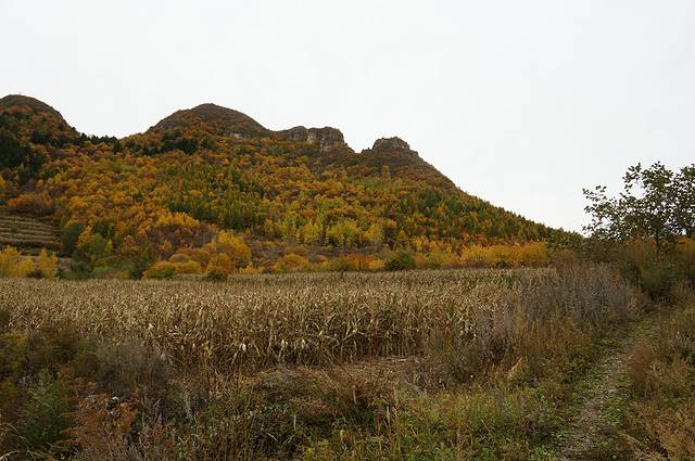 10月12日,自驾前往,早上7点出发,走京藏高速(G6)过了八达岭下道,往延庆方向直行,走到头有路标去往“百里山水画廊”有时路标写成“千家店生态景区”,反正是一个地方。我们路过沈家营、永宁镇、刘斌堡,走刘干路到达干沟。进入景区。