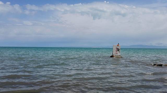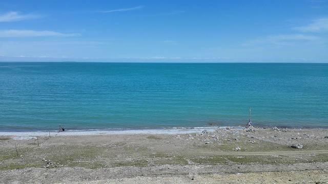 又过了一会,我们来到二郎剑风景区,这里可以近距离感受青海湖,还可以下水。水中碎石很多,要很小心不然会被割到脚掌。青海湖真的很像海,因为是咸水湖,看起来颜色很美。