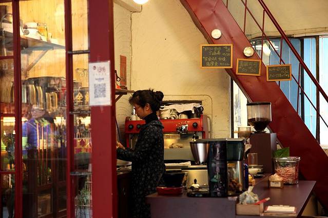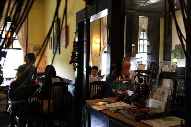 台南的咖啡馆多如牛毛,找到一家适合停下来的咖啡馆却不容易,窄门咖啡是第一眼便吸引住我的。从文学馆出来步行到南门街,对面是孔庙了,窄门的旁边是一家同样有名气的二手书店。窄门的特点就在于它很窄的门,只能容一个人侧身进去,但里面是豁然开朗的。