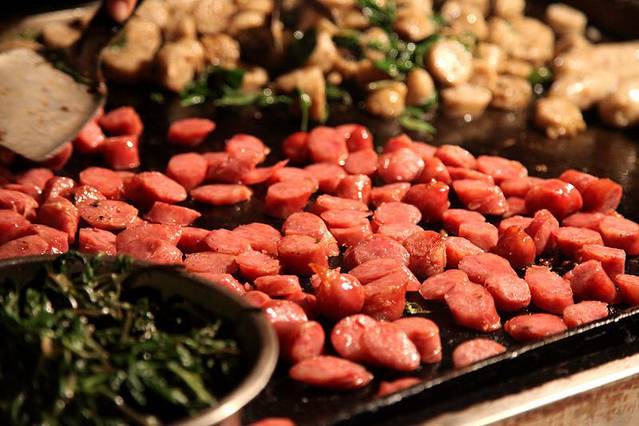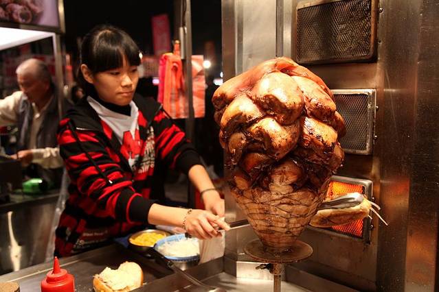 夜市很大,整个逛完一圈,需要一个小时,再加上吃吃喝喝,消耗的时间也挺多,但是如果你在台南住下来,可以周四周六周日连着去,把晚餐都搬来这里品尝美食都可以。花园夜市大约可分为美食小吃区、休闲娱乐和精品百货三大区块,其中人潮最多的,当然是美食区,火锅、烧烤、沙威玛、臭豆腐、臭臭锅、水鸡、蚵仔煎、牛排和大肠香肠等等小吃应有尽有,建议大家不要在一个地方吃饱,多转转,分量要小一点,这样可以助消化。