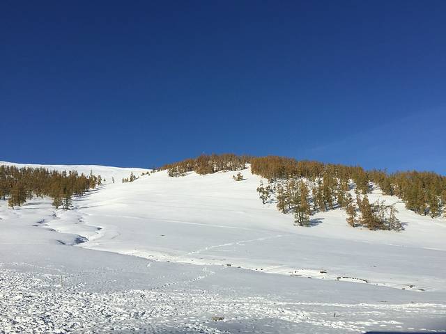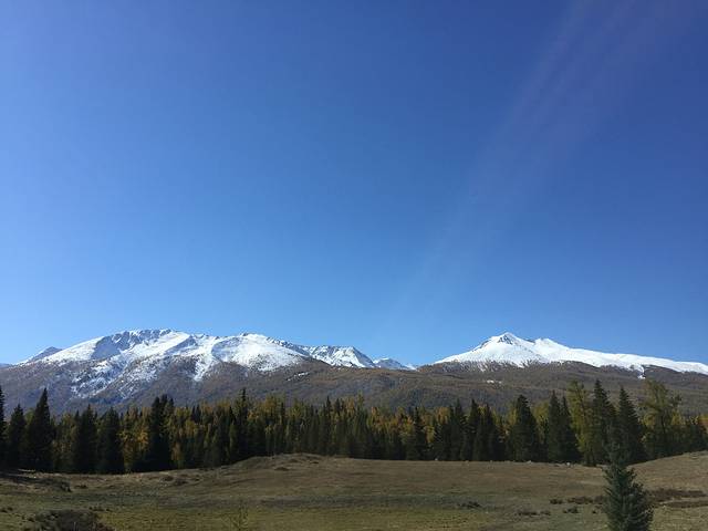 快到喀纳斯时,天气越来越冷,车内温度显示2度,我们把能穿的都裹在身上,不经意间就经过了雪山...
