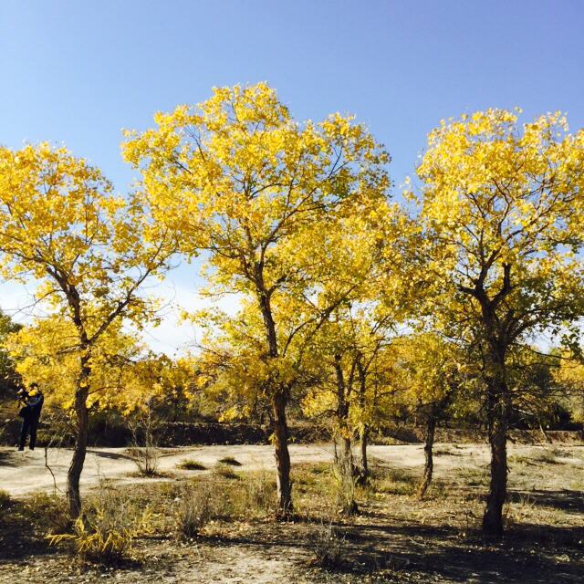 4号呢再次去了五家渠市的胡杨林景区,这次的胡杨林和上次完全不一样了,一片片金黄色的。门票是30一个人,个人感觉超值