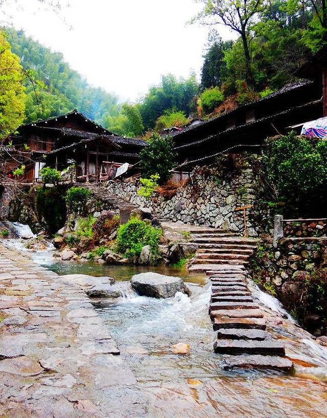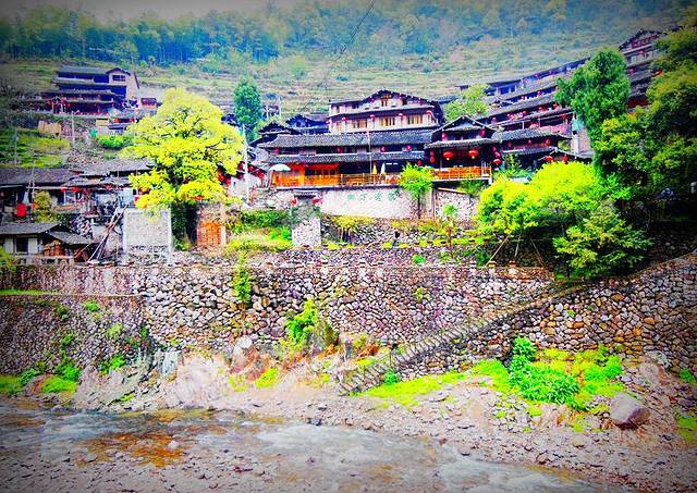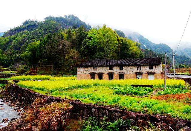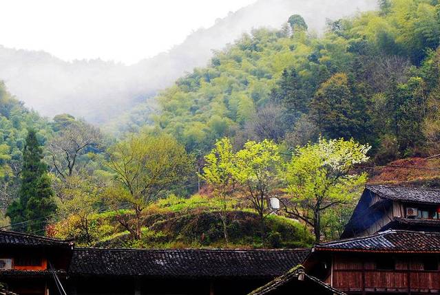美丽的自然风景,和原生态的古村落相得益彰,完美和谐的画面: