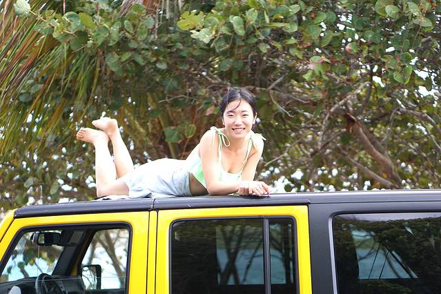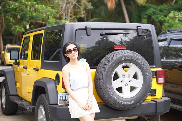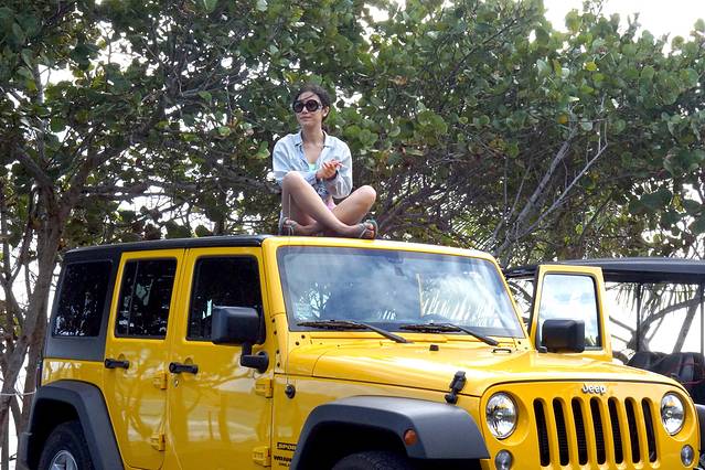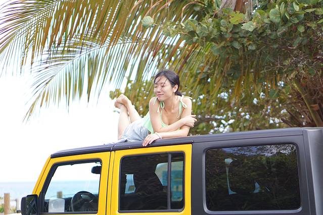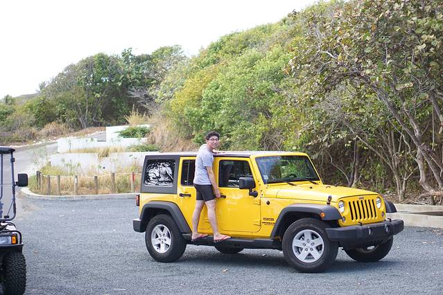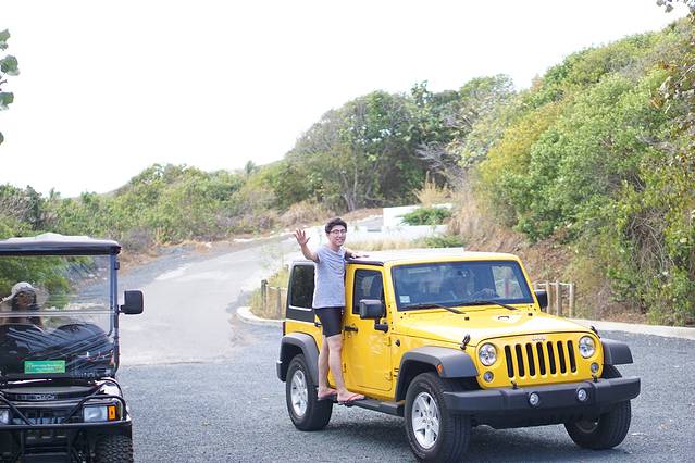 到了岛上离tour开始还有很长一段时间,于是我们先自己去各个沙滩转了一下。岛上路不好开,可以租吉普车或者租那种类似高尔夫球车,我们租了一辆颜色骚骚的吉普