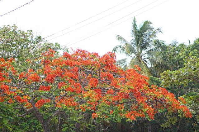 路边随处可见的凤凰花,初看之时觉得颜色有点俗气,但是看久了就觉得很欢喜,就像当地的人民一样,热情友好,简单纯朴。这个地方不算发达,自然景色却美丽大方,让人流连忘返。几天的旅行让我捂了一冬天的皮肤瞬间黑了十个度,连70SPF也挡不住太阳的热情,就像这里的人一样。
