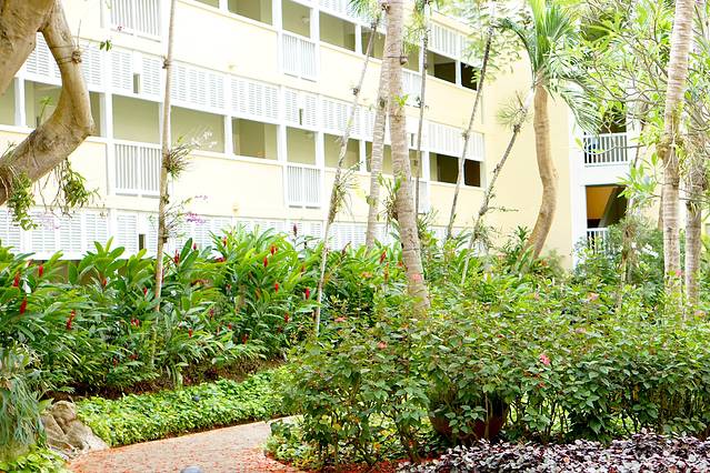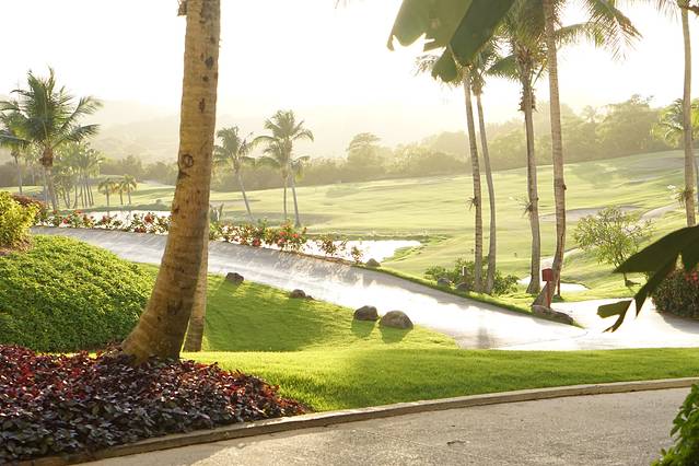 酒店有一片很大的高尔夫球场,大片大片的草坪。酒店建在一个悬崖边上,在泳池边就可以看到波多黎各主岛的景色,还有大海~酒店的悬崖边上是很多个大大小小的泳池和餐厅,没有沙滩,但是它有一个私人小岛是有沙滩的,每天白天隔半个小时有shuttle去小岛。我们因为白天基本都浪在外面,所以没有去那个小岛。