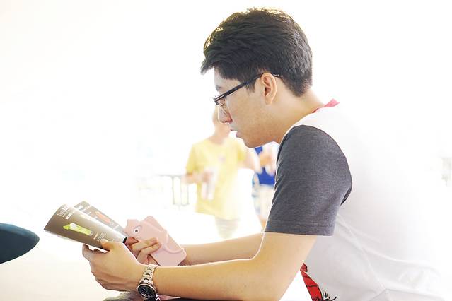 认真翻阅鸡尾酒介绍的少年