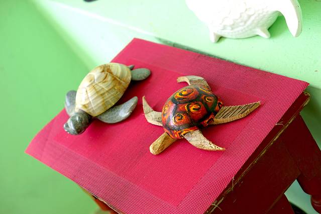 半路的一家小店,卖一些纪念品和吃的,五颜六色的纪念品很美丽,我们买了椰子吃,喝完椰汁可以劈开来吃椰肉,为了挖椰肉还牺牲了我一根手指,划的血淋淋。。。