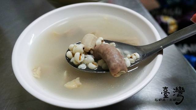 由薏仁、芡实、莲子、茯苓、猪小肠为主要食材的四神汤,是台湾家喻户晓的健脾食方。肠子处理得很干净,没有任何异味,口感清新寡淡,做法上并没有过多讲究,但这种简单朴实的味道却能停留在味蕾的深处,最能叫人细细品味。