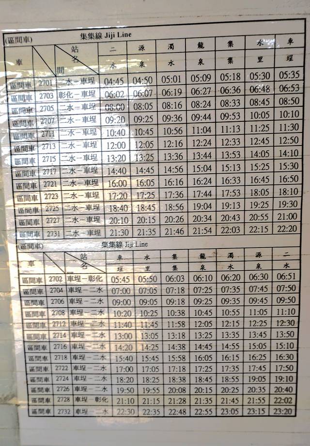 二水——源泉——濁水——龙泉——集集——水里——车埕