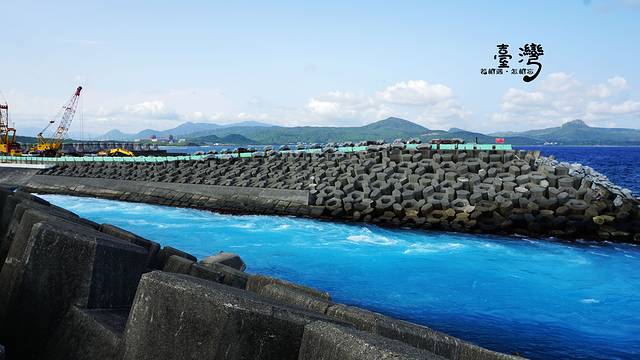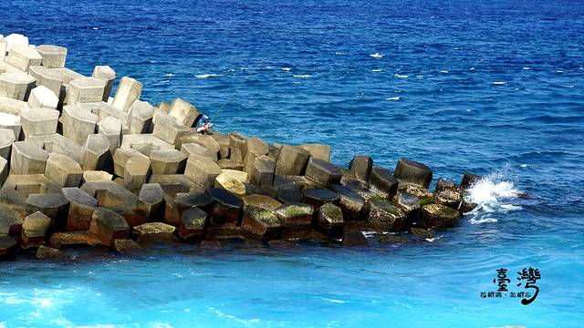 包车的好处就是不用动脑筋,司机会带你逛遍沿路的所有美景,“核三厂出水口”就是其中一个不太为大陆人所知的,不算景点的景点。往左可览猫鼻头公园全景,往右可观阴阳海,往南可看灯塔及垦丁,地方真真是极好的。接触外海的边缘,海水呈现出深浅分明的两种蓝色,深的恰似蓝色矢车菊的花瓣,泛着王冠上宝石的光芒;浅的好像小人鱼的眼睛,纯净但又璀璨。忍不住想要离这清凌凌的海水更近一些,翻身跨上了扭王块。这些字块体并不好走,块与块之间隔着深深的沟,像是横过来用脚攀岩,可包车司机却闲庭信步般甩开了我一大截,我便不再急着追赶。