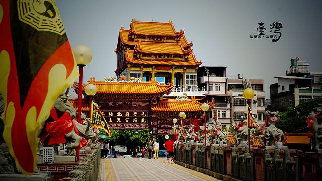 在莲花潭莲花盛开之际,簇拥着湖上的两座孪生阁楼“龙虎塔”,塔身与岸边有九曲桥连通,龙口进虎口出,可以消灾减厄增吉祥。莲池景区庙宇林立,除了龙虎塔外另有寺庙二十余座,均为高雄有名的寺庙光景点。