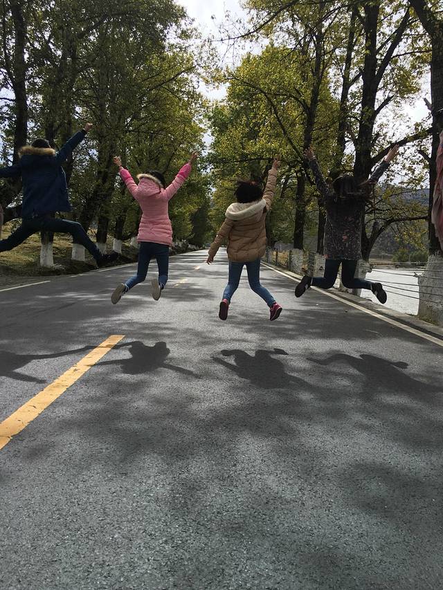 新都桥是真的没有让我失望的,好漂亮,我们也坐在路中间拍照,跳跃拍照