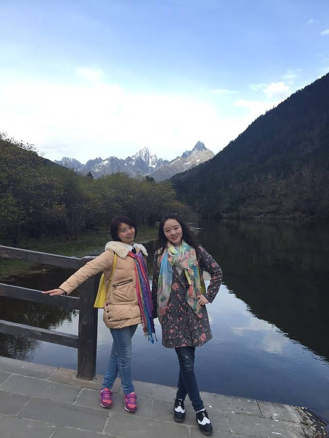 从山底就坐观光车到山顶,一路的让我失望呀,没有觉得有多漂亮,不过当我到达木格措的时候我还是喜欢上了,平静的湖面,岸边的牦牛,山上来的五颜六色的植被,远处的雪山,静谧的感觉啊