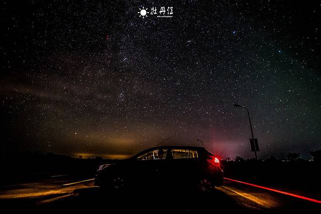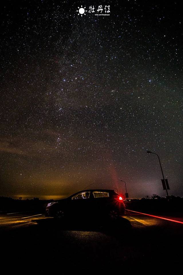 回宾馆的路上抬头发现漫天的星星,但是光污染太大,索性驾车往外走走。由于夫人担心安全问题基本就开出了一公里,停到了一个隔离带中间,速度弄起装备开拍。