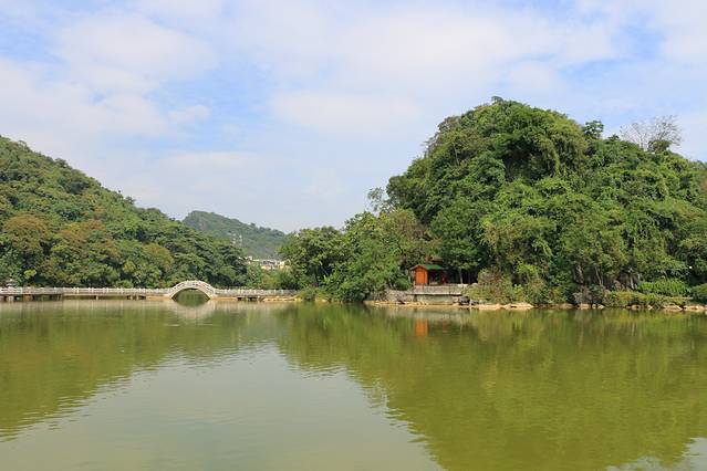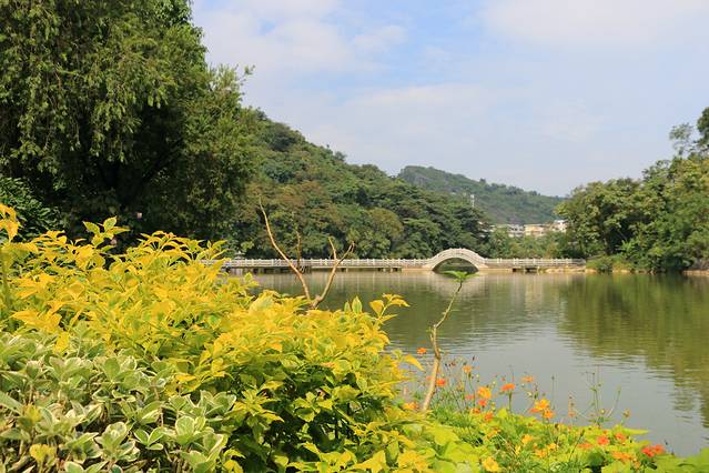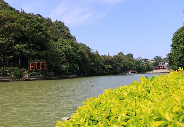 绿油油的灌木丛也为桂湖的景色增添一份美丽