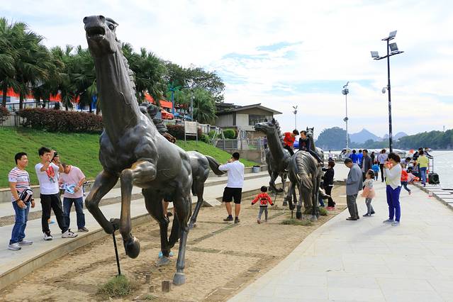 解放桥下的雕塑,这几匹马命非常的不好,每次漓江汛期,最早没淹没的就是它们,它们也伴随桂林平安的度过一次又一次的洪水