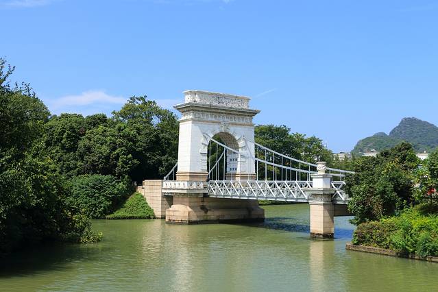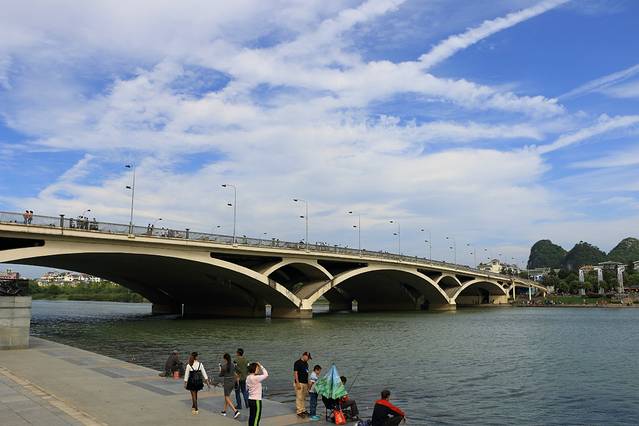 桂林解放桥横跨漓江,位于桂林市解放东路东端,连接了桂林市主城秀峰区和七星区,这里可以看到最繁华的桂林,也能看到最美的漓江。解放桥是每年汛期最惨的桥,每年都会被淹以至于汛期这里无法通行。