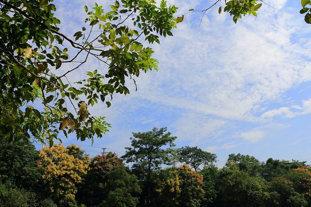 初秋的桂林是五彩的是充满味道的,初秋的桂花树盛开的格外茂盛,那一股甜味甜的醉人心脾、甜的让人不知所措,五颜六色的树木、蔚蓝的天空和碧绿的湖水组成的是一幅美丽的画卷,不禁让人想起那一首诗,清风拂绿柳, 白水映红桃。 舟行碧波上, 人在画中游。