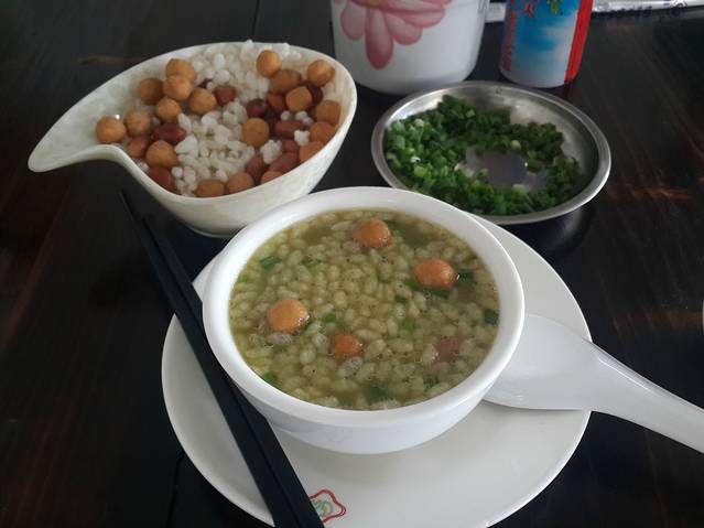 桂林还有一样美食-油茶,顾名思义,一定要放油,恭城人用来打油茶的油,多为猪板油和植物油混合炼过的油,绝不用牛、羊油,瑶民认为那样会破坏茶味。吃油茶的同时还会加上船上糕、萝卜糕、芋头糕、南瓜饼、甜年糕、炒粉、炒面、炒粉利等桂林当地的经典小吃颇为丰盛。