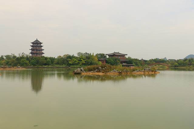 桂林西湖景色,整个公园历史、文化、景观交融。