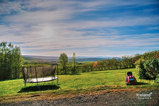 傍晚的时候院子里居然来了冰激凌车,女主人很热情地喊我们去车上挑冷饮。据说在这边因为地广人稀,通常每周冰激凌车都会来两次,挨家挨户地卖冰激凌。尝了一个房东推荐的巧克力花生味,还不错,想想六月份十几二十度的天气,对冰岛人民来说大概已经算正宗初夏了吧。