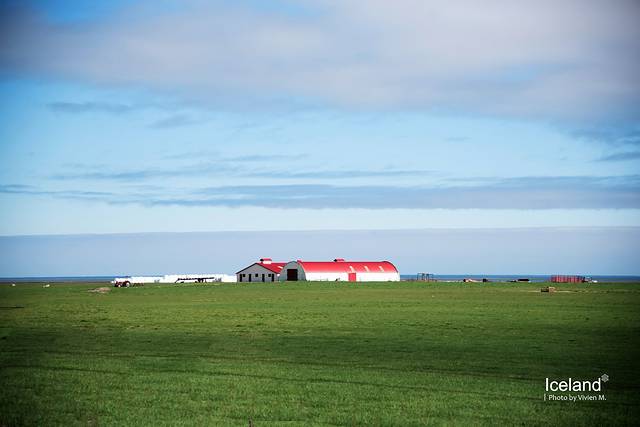 去Skogar的一路两边都是成片的草甸,晚上七八点钟的日光还是相当好。这一天的酒店就在Skogar瀑布脚下,同样是Hotel Edda集团的,因为是在这个日不落的季节,不用赶天光,所以笃定地先安顿好,吃完晚饭再出去晃晃。