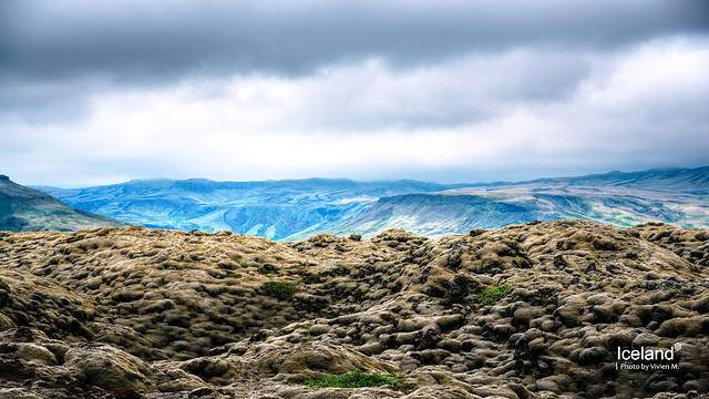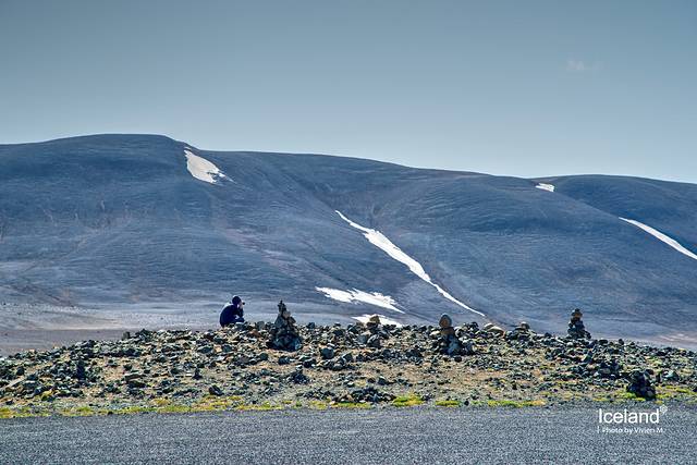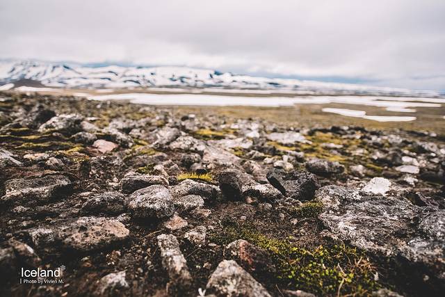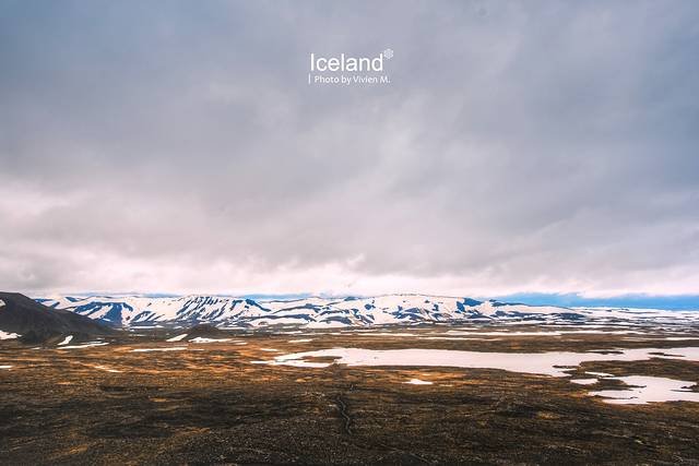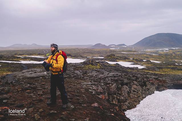 集合地点在离火山口大概3-4公里的公路边,从雷克雅未克开出后就上了空旷的1号公路,之后转到另一条公路,眼前就是这样苍茫的风景了。一下子从城市置身在这样雪山荒原的景致里,前后几乎没有其他车,我竟然有些紧张,而这种紧张感在之后的行程里也随着周遭的苍凉程度反复出现。