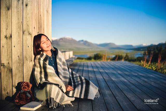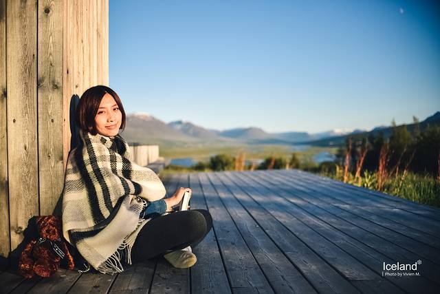 北部最大城市Akureyri,与Akureyri隔峡湾相望的山上民宿,门口的露台,夕阳映红了脸。