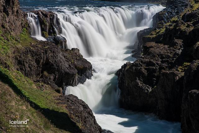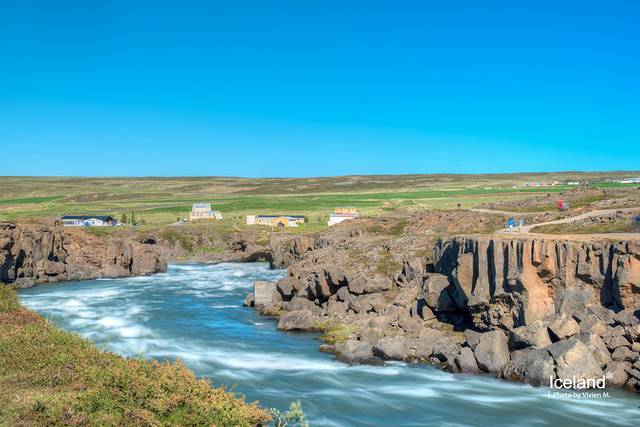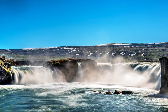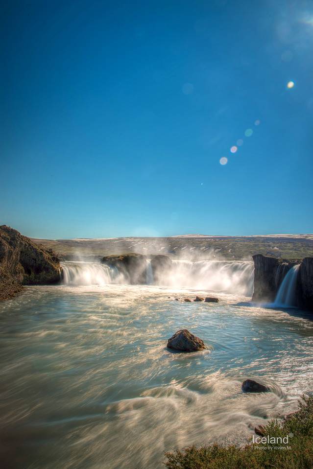 Goðafoss神之瀑布在米湖的西面,之所以叫做神之瀑布是因为1000年前当基督教被引入冰岛的时候,lawspeaker把之前信仰的挪威众神的雕像扔进了这个瀑布里。