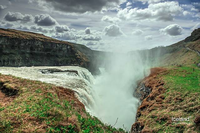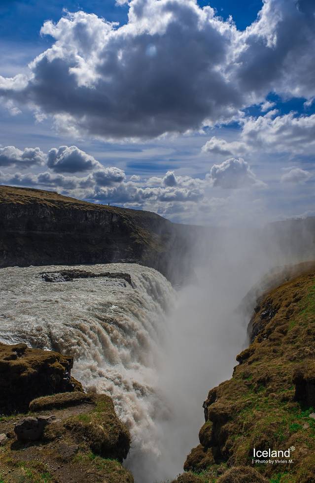 Gullfoss是此行见到的第一个瀑布,有三段,百米之外就会被水汽打湿,断谷气势恢宏,水流速度非常快,只是水流太过浑浊。