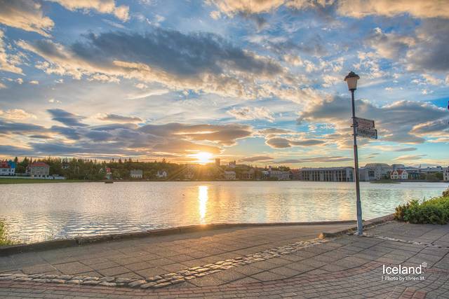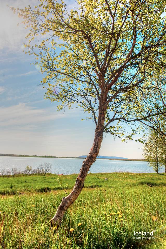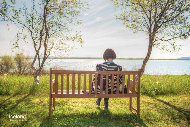 六月的冰岛凌晨两三点就天亮了,我六点醒来的时候外面已经是阳光明媚,头痛散去,心情也顿时雀跃起来。酒店的餐厅是湖景view,吃早餐的时候阳光就洒在餐桌上,温暖明媚。吃完早餐绕到湖边散个步,自是十分惬意,所谓“开启了美好的一天”就是这样吧。
