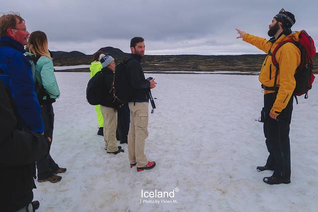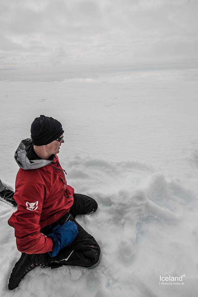 我们这一组大概十五个人的样子,竟然还遇到了三名同胞,都是摄影师。两名向导负责一前一后看好我们。向导说,今年大概算是冰岛最冷的春末夏初,往年这时候这一片的冰雪应该都已经化了,不过也恭喜我们赶上了今天第一个不下雨的时段。