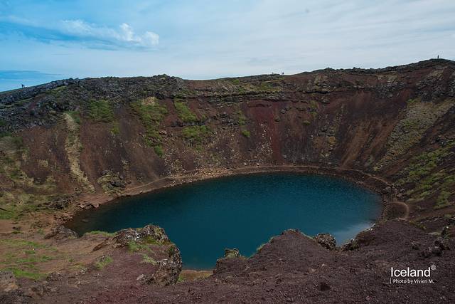 首先经过一个火山坑,叫Kerið Crater,有3000年的历史,55米深,环绕火山口有步道,风大到不行,我和F先森属于典型的到此一游,摁了张照片就掉头撤了,大风之下摇摇晃晃的。