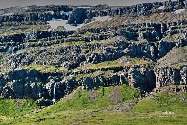 一路向东,先是在一号公路上,开过草甸然后开过海岸线,原本可以一号公路一路开到Egilsstaðir,但没想到导航竟然导了一条近道,应该是92号,不太确定,是一条山路,有几段非常陡峭,又是那种前后放眼望去都没有第二辆车的地方,以至于后来远远看到若干个弯之外闪过一辆车影,都兴奋得不行。