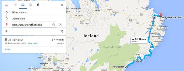 游完冰湖,拗完造型,顺路回到Hofn再喝一碗龙虾汤,接着就开始了环岛的第一段土路行程。总的来说我觉得冰岛的路况并不算好,除了一号公路路况很好外,通常去一些景点都要下一号公路再开一段土路或者砂石路。土路或砂石路的长短决定了车程时间,往往会看着google map的预期时间越来越长。总结一下,1号公路最佳,限速也较高,两位数字的公路路况就稍差一些,限速也降低,而三位数字的公路路况就不太妙了,常常会碰到前车屁股后面尘土飞扬,或者路面砂砾粗到坐在车里都能感受到磕绊的程度。