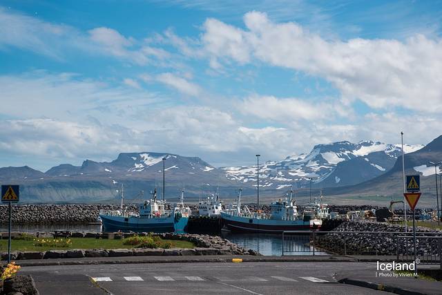 Husavik坐落在Skjálfandi湾沿岸,与雪山隔海相望,在小镇的主路上view就很赞。小镇以观鲸闻名,甚至夏季还有晚上八九点出发的团。因为我们之前在夏威夷出海看过,所以这里没有再参加,但是很后悔!因为后来bnb的房东跟我们说当地看到鲸鱼的概率90%以上,而且是很近距离的那种....想想再夏威夷只是远远地看到了个鲸鱼尾巴,也真是忧伤。