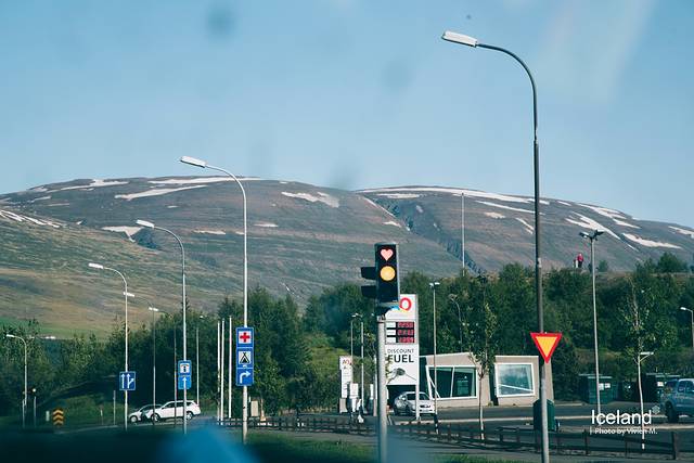 Akureyri是冰岛的第四大城市(前三大都在首都区域),虽然小,但绝对算得上这这几天来很成规模的一个地儿了。由一条跨海堤岸连接,我们在去bnb之前先去城里找超市补给了水和食物。城里人还挺多的,成排的商店和餐馆终于有了些城市的样子。