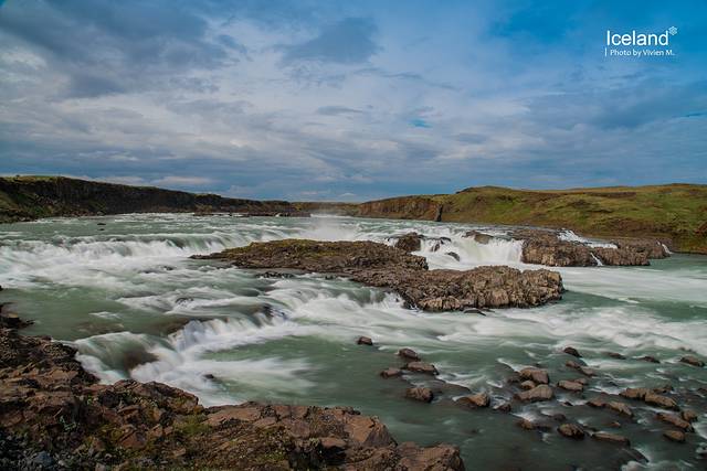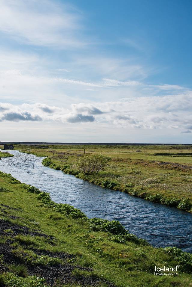 Urriðafoss不那么为人所知,在一号公路的岔路边,需要开一段土路。此时周遭的风景已经不是那么恢弘,而是有那么一点点的田园风光。Urriðafoss也比较平缓,但是它流经的熔岩平原却是从冰河时代就已形成的非常著名的存在,相信冬天在白雪覆盖下会更美。