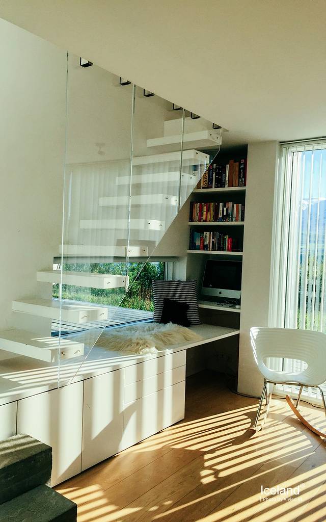 房东是一对从雷克雅未克搬过来的夫妇,丈夫是工程师,妻子是老师,妻子的爸爸是教音乐的,家里钢琴、吉他各种,屋子里相当文艺,才开始做airbnb不久。院子里是恒温泳池,直接引的是山上的温泉水,女主人还兴致勃勃地带我们去看了院子后面半山腰的spa池。