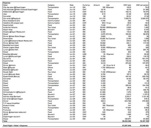 最后晒一个花费清单,人均人民币33000,机票酒店占了一半,各种tour花了人均3500,另外租车是个大头,吃的方面一般是挺便宜的,但是我们吃了一顿龙虾和一顿烤肉大餐,花费就蹭蹭蹭上去了...纪念品啊披肩围巾啊什么的花了差不多人均人民币6000,这属于额外开销=。=