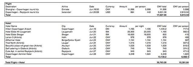 具体机票和酒店费用见,人均人民币15000左右: