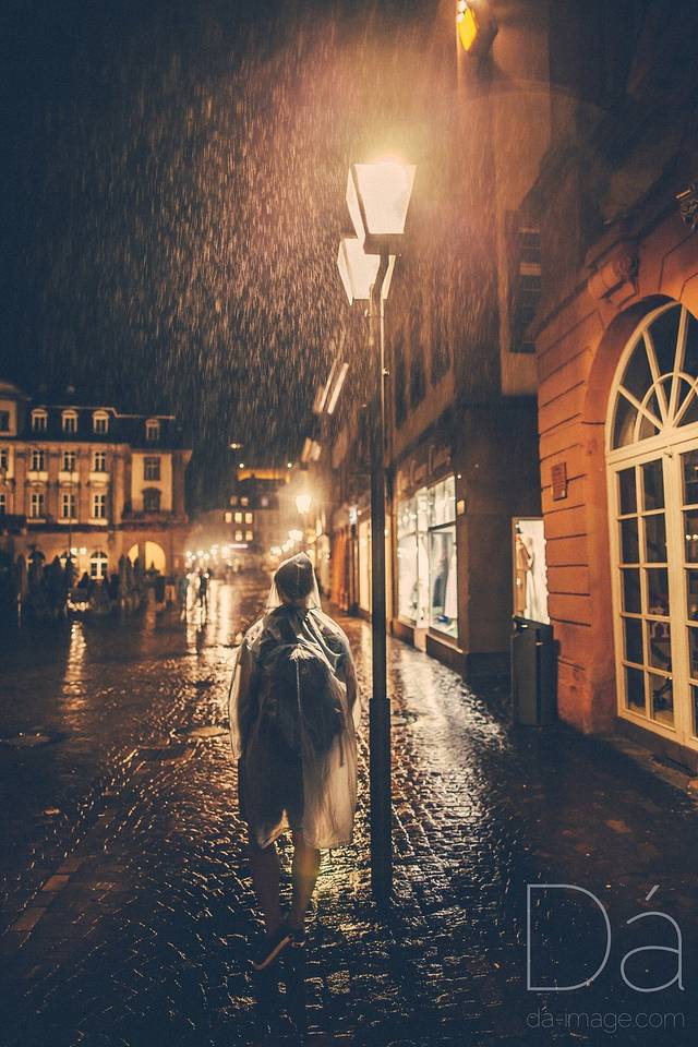 雨夜下铺满鹅卵石的海德堡街头,感谢出镜的帅帅