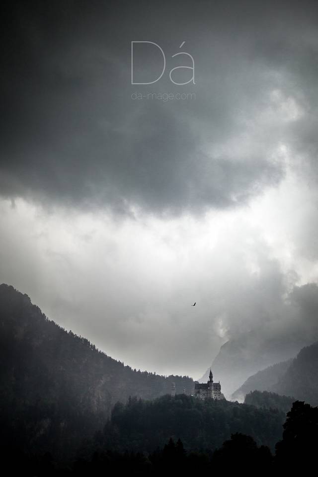 据说路德维希二世王子把新天鹅堡建在这阿尔卑斯深山之中为的就是远离世人的打扰,但如今门庭若市的新天鹅堡已成为德国最炙手可热的景点之一。且不管王子的在天之灵作何感想,参观之余我们总是要感谢这个王子的才华与孤独,才留给世人如此美好的建筑杰作。只是我们参观那天雨来的不太巧,就这样美丽的童话城堡生生被我拍出了浓重的哥特味儿。