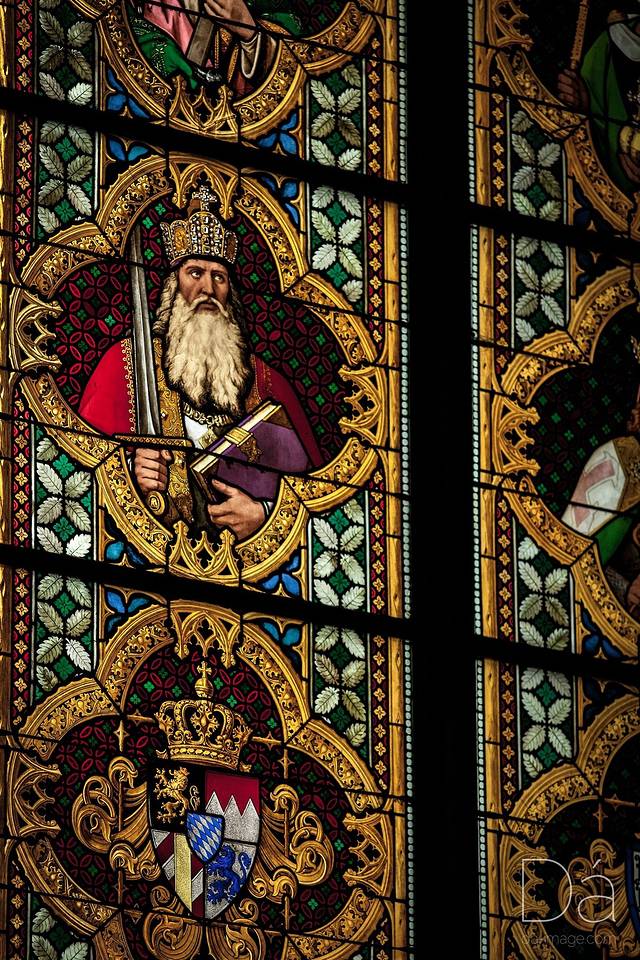 彩色窗户上的科隆骑士圣人像